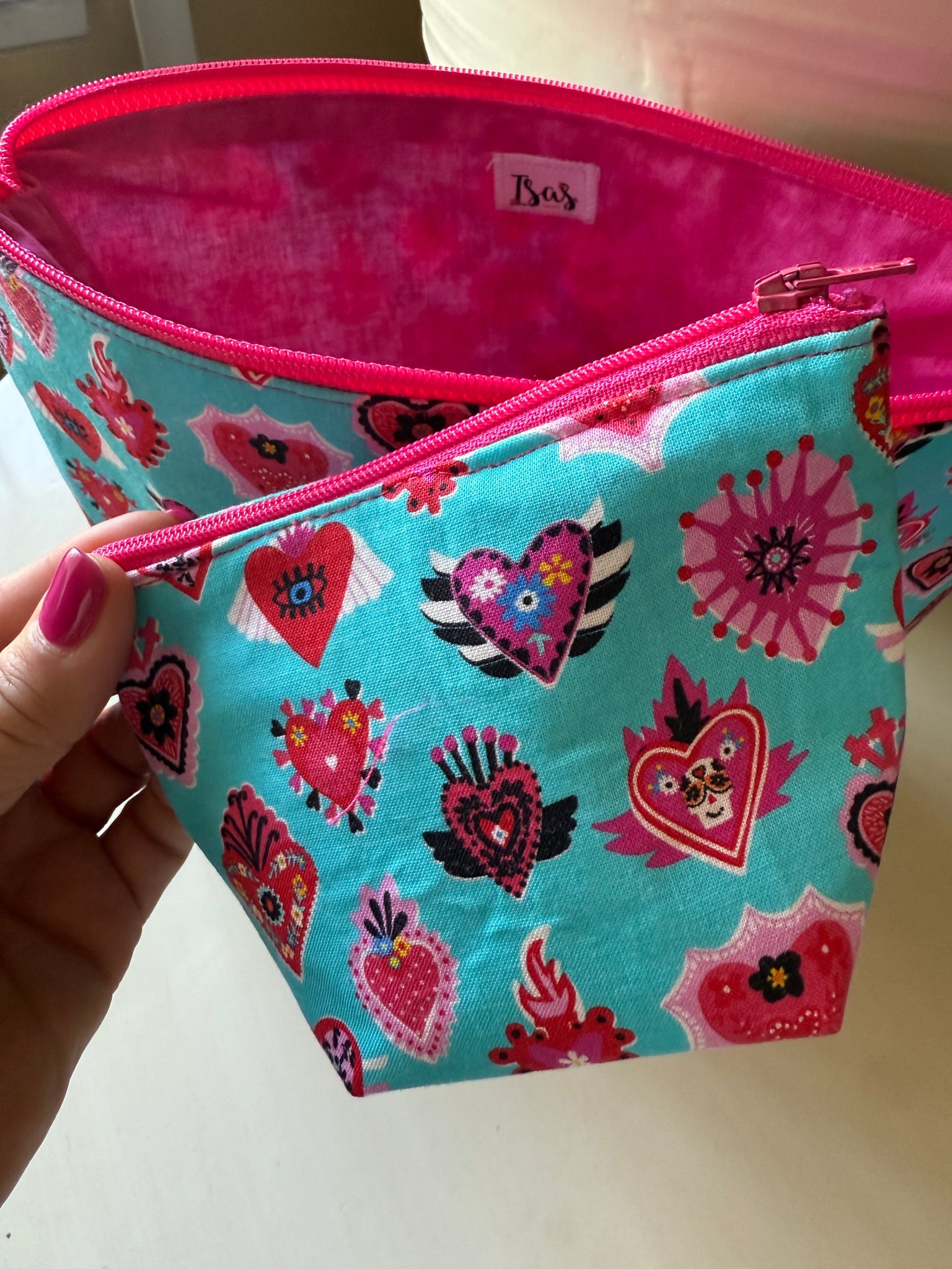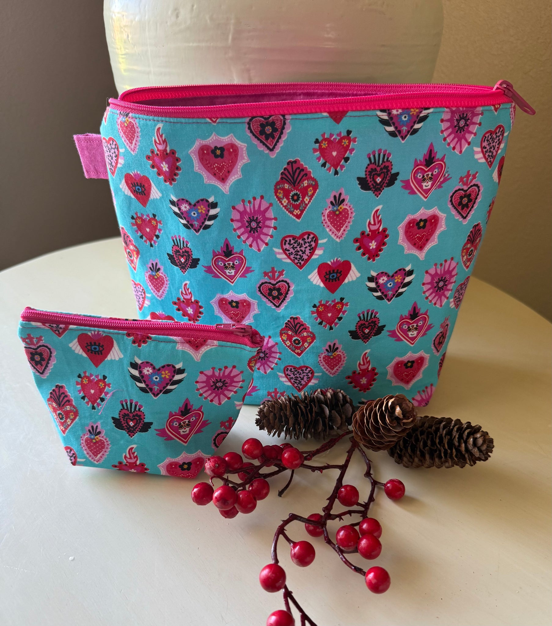 Set includes, Makeup bag handmade with 100% cotton fabric and the  matching mini zipper pouch.