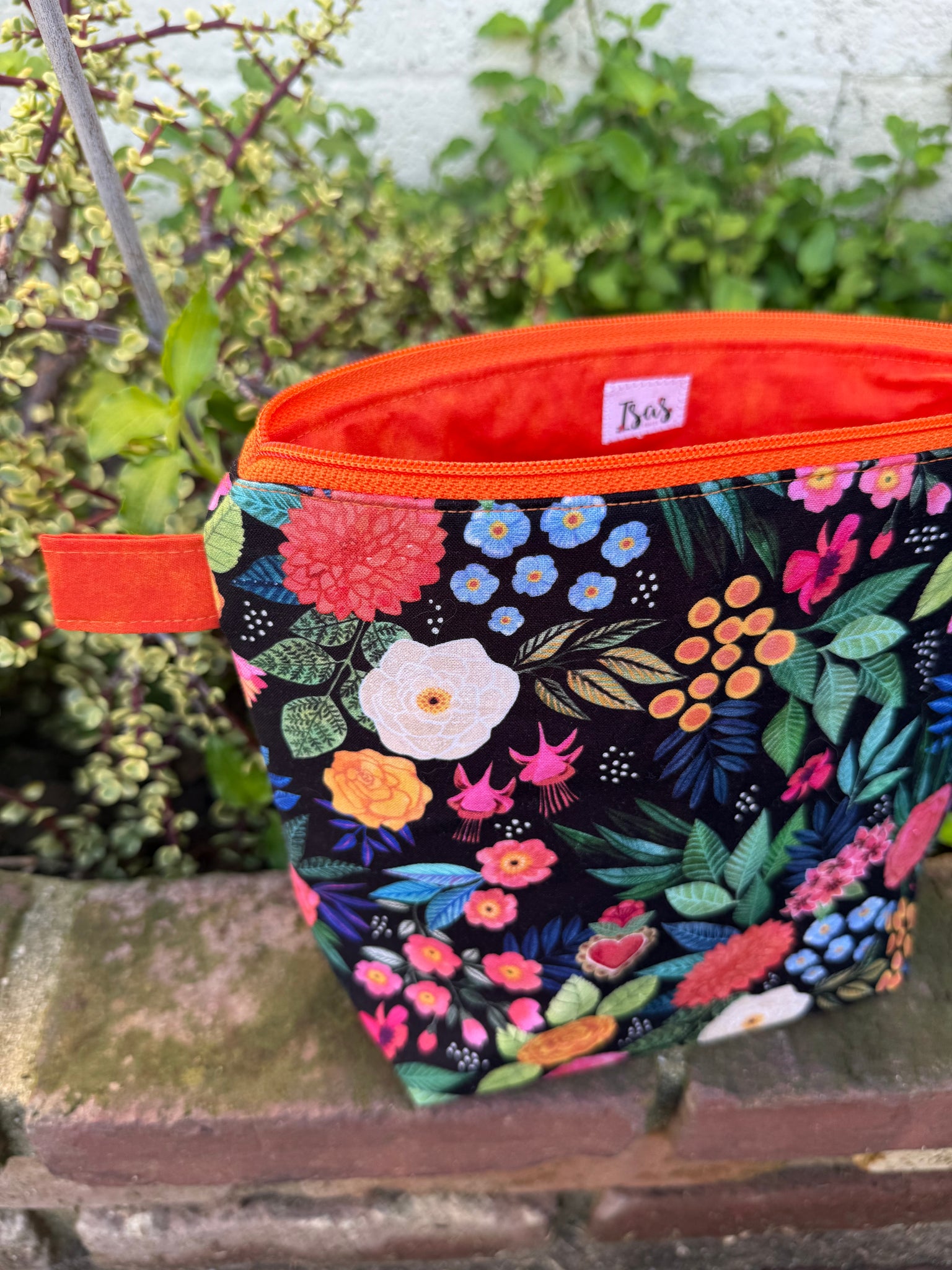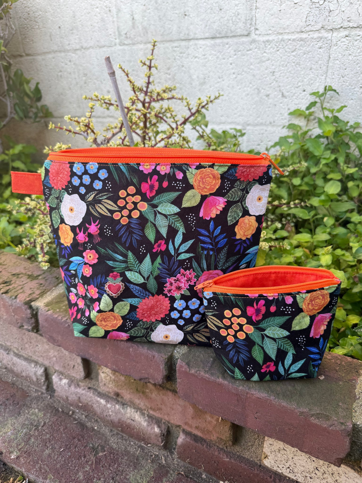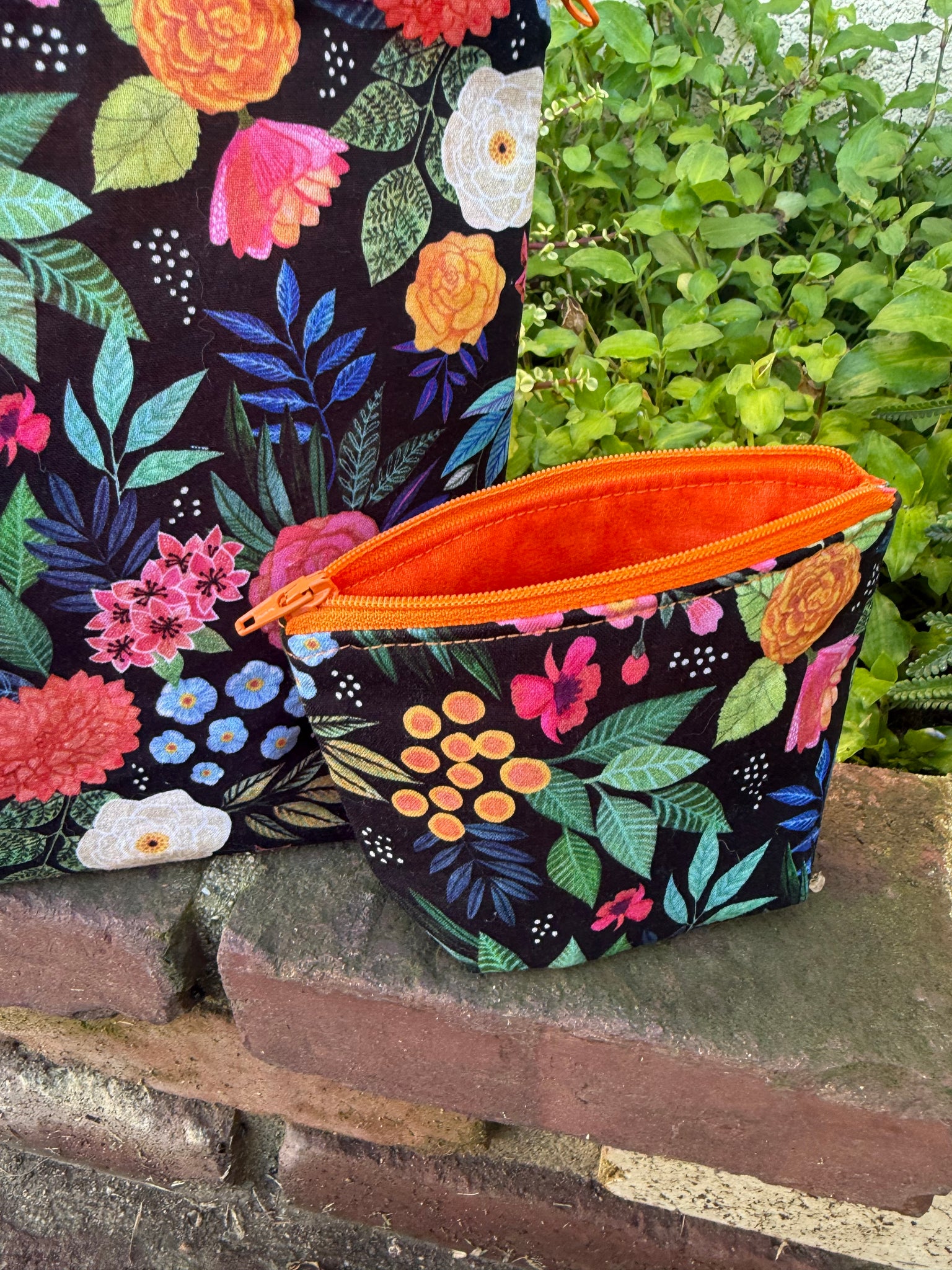 Makeup bag handmade with 100% cotton fabric with matching mini zipper pouch.