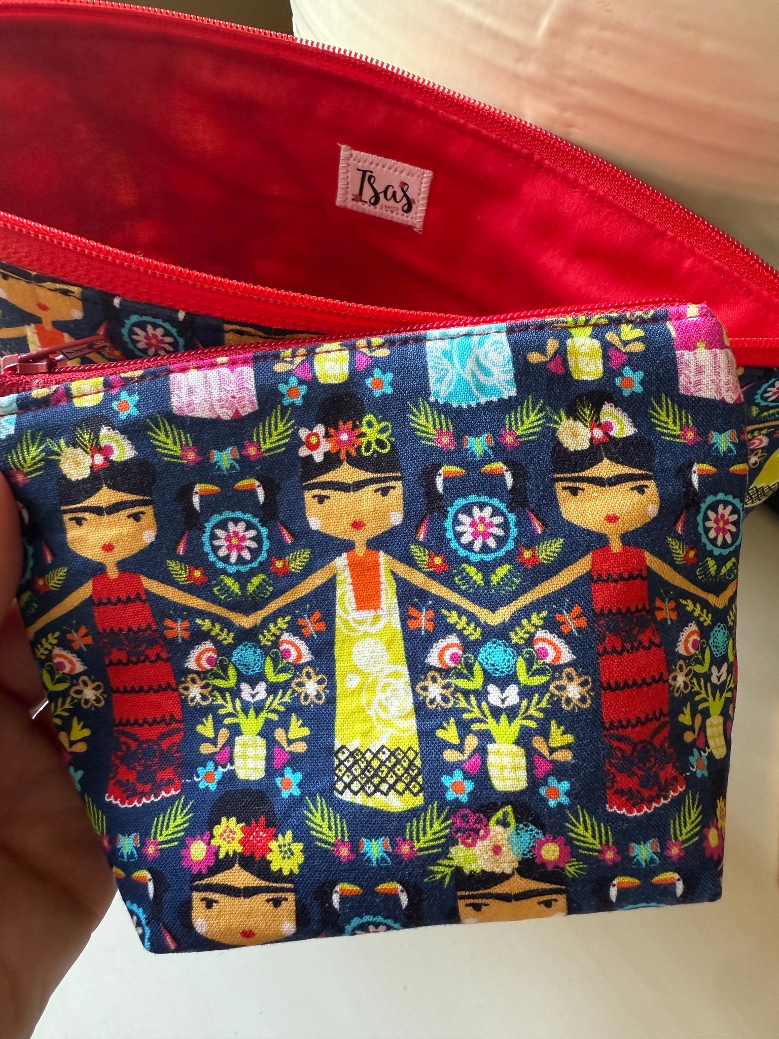 Set includes, Makeup bag handmade with 100% cotton fabric and the  matching mini zipper pouch.