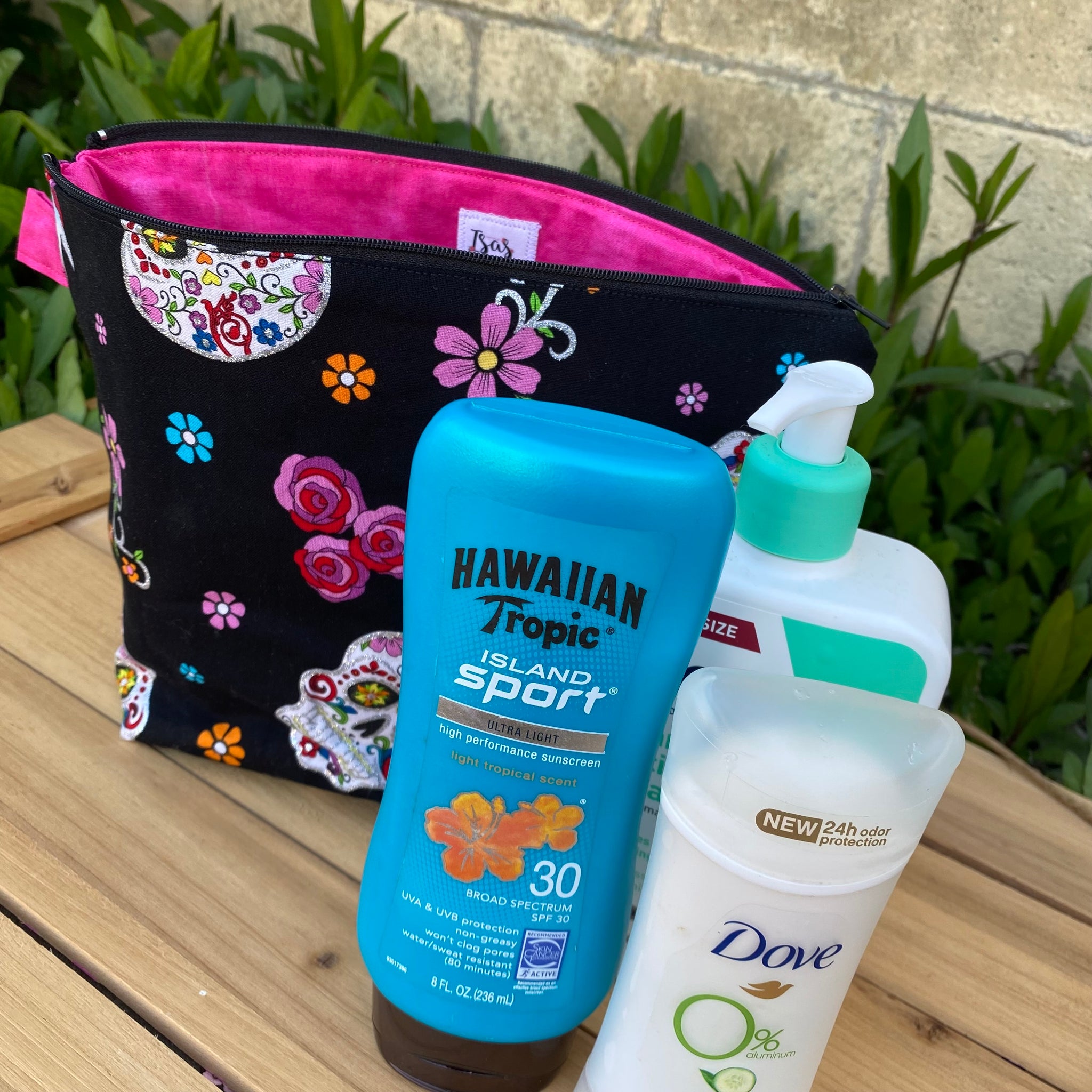 Makeup bag handmade with 100% cotton fabric.